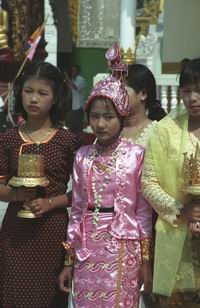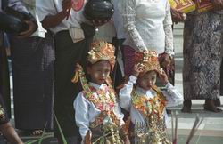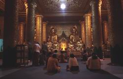 皆さんは、ミャンマーという国が何処にあるかご存じでしょうか? アフリカ? いえいえ、アジアですよ。 旧国名はビルマ。「それならば聞いたことがある!(^^)」という声が聞こえそうです。映画「ビルマの竪琴」で有名なその国はタイの西、バングラディシュの東隣にあります。 国土面積は日本の約1.5倍、人口約4600万人。内80%が上座部仏教徒です。 私は、2004年3月末に訪問しました。 この国はパゴダで有名です。あちらこちらに大小のパゴダが無数にあります。パゴダとは仏塔のことで、お釈迦様の御遺骨を納めた塔のことです。まあ実際に“本物 ”が納められていることは稀ですが…。 日本では五重塔や三重塔等がそれに当たります。但し日本の木造に対して、ミャンマーの仏塔はレンガ等の石造りです。 すっすごい! この国で一番有名なパゴダといえば、何といっても首都ヤンゴンにある『シュエダゴンパゴダ』です。高さは何と100mもあり、総金泊張り。塔の上部には宝石が散りばめてあるそうです。 その大きさが醸し出す荘厳さに圧倒され、不思議と心が安らぎます。日本の小さい仏像やお寺の感覚が染みついている私は、一見しただけで安らぎの心になった自分に驚きつつ、思わず「大きいことは良いことだ」と感心しました。 このパゴダは、今を遡ること2500年前、インドに旅したこの国の商人が建てたそうです。彼はお釈迦様に直接お会いし、髪の毛を分けてもらいました。大事にそれを国まで持ち帰り、仏塔を建てそこに納めたそうです。やがて時の権力者達がその仏塔の上に増築し、現在の姿になったということです。 夜もすんごい! 私は夜の8時頃に訪れました。寺院なので素足で歩くことになります。これは東南アジア寺院に共通する作法です。 歩いてみると、日中の38℃という暑さも一息つき、宵の爽やかな風が吹き抜けています。太陽に熱せられた大理石の床もほんのりとした暖かさになっており、それが非常に心地よいのです。心身共に穏やかになりました。 広大な敷地の中には驚くほどたくさんの老若男女がおりました。床に座り込んでお参りをしたり、恋人と会話をしたり、子供たちは走り回ったり。目の前にはライトアップした巨大な金泊張りのパゴダ。さながらお釈迦様に見守られているかのようです。人々に愛され息づいている、まさに生きた信仰の姿がそこにありました。 得度式をしていました。 ビルマ人の多くは生涯に1度 坊さんになるそうです。 ミャンマーは良い国です。人々は穏やかで、食べ物もおいしい。 次回は世界三大仏教遺跡バガンをご紹介します。 つづく |