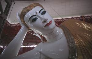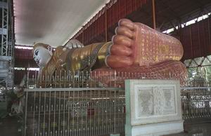 想像を絶する大きさ。 首都ヤンゴンには、バゴーの寝釈迦仏と同じくらい大きな寝釈迦仏があります。 幹線道路から一本脇道へ入ります。そこにチャチャウッタヂー寺院は佇んでいました。シェイダゴンパゴダの絢爛豪華なたたずまいを知った後に訪れますと、ものすごく質素に見えます。果たして「こんな所に巨大寝釈迦仏が?」。 しかし、一歩境内へ入りますと、唖然呆然。柱の間からかいま見えるそのお姿は、信じられないぐらいにで・か・い。何と全長70m、高さ17m\(^◇^)/。鉄骨の屋根で覆われています。 どうです。で・か・いでしょ。 人間って、あんまりにも大きなモノを見ると、笑ってしまうのですよね。その雄大さに飲まれてしまというのか、呆れるからなのか。私はしばらく笑いが止まりませんでした。 この国は巨大な仏さまが大好き。私も大好きです。 つづく |