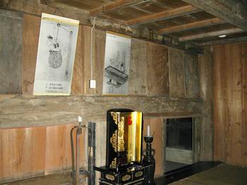 本堂裏に扉があります 薩摩藩からの隠れ信者を受け入れていた薩摩部屋は、源光寺本堂にあります。 入り口は本堂の後堂です。 扉を開けると小さな部屋がありました。 そしてその小部屋の隅に、本堂床下につづく扉があります。 右下が薩摩部屋への入り口です 薩摩部屋は、「部屋」とよべるようなものではなく、床下そのものです。 しかし高い本堂の床下は、十分な広さと高さがありました。でも勿論、明かりはありません。 確かにここならば、人目に付かずに聴聞出来ます。 しかし、なんというご苦労でしようか。まさに、命がけの聞法です。 ◇木の枕 「薩摩の念仏衆の人々は看視の目をくぐり夜陰に身をかくし秘かに国境を越えては寺にたどりついて法を聴聞したが、疲れた身体をしばしの仮眠に癒したことだろう 木の枕に身を休めた人々の想いは何であったろうか」 源光寺展示より ◇親鸞聖人夫人“玉日姫様御絵像” 「厳しい念仏禁制の下に信教の自由を奪われた薩摩の浄土真宗の信者の一人、出水郷の農夫某日頃から仏法聴聞の念やみがたく看視の網をくぐり命をかけて国境の山路をひそかに越えて肥後水俣にたどりつくと顔見とりの農家にしばしの憩いをとるのが常であった。 彼はいつも小さな木箱を大事そうに背負うていたが口ぐせのように“命より大切なもの”と言って居た。その日もその家で休んでいると不幸にも十四、五名の捕方に包囲され“も早これまで”と木箱を家人に託し自ら首を斬って己れの命を絶った。 木箱の中には玉日姫の御絵像が納められていたが、彼は玉日姫を通して親鸞聖人を拝し、更に阿弥陀如来を礼拝し、役人の目をのがれたと思われる」 源光寺展示より (おわり) |