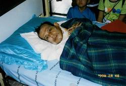 4日目は、バンコクから北へ100キロちょっと、ロプリー村にある「プラバトナンプー寺院」を訪問しました。 丘の麓にあるこの寺は、26歳で出家した元エリート技術者の「アロンコット住職」が、1992年にベット数9つの小規模な施設で、エイズ感染者の受け入れを始めました。 訪問時には、末期患者38人、感染はしているのですが未発症の患者50人程、僧侶13人が共同生活をしていました。患者の中には、門前に置き去りにされた方もいるそうです!ヒドイ話だぁ…(T_T)。また、家族に見捨てられて、行く当てがなくここに来たという方も多いそうです。 この寺院では、未発症患者は自分の技術を生かし、共同体を維持する仕事をします。私がお話を伺ったチャンさん(30歳)は元大工なので、施設の建設や修繕を担当しているそうです。「仕事をすることによって、(一時でも死を忘れ)気が紛れる」とお話されていました。 ☆☆☆ いよいよ最終病棟の見学です。それにあたり注意を受けました。「風邪をひいてる方はいませんか?」と。私は「風邪をひいていると、“自分”にエイズがうつるのかな?」と思ったのですが、それは大きな勘違い。 「患者に風邪をうつすと、抵抗力のない患者が死んでしまう!」とのこと。 ビックリ・ドッキリ。知らず知らずに人の命を奪ってしまうことがあるなんて。それも私が!。 “自分の保身”しか考えていない私、相手のことにちっとも思いが至らない私であるなぁー、と思い知らされました。“我が身可愛さという煩悩”の真っ只中だったんですね。オハズカシイなぁ…。 病棟にはガリガリに痩せ衰えた方々が虫の息で横たわってました。 カメラを向けることをためらっていた私。すると一人の患者さんが「撮ってもいいよ」と言うのです。「この現状を伝えてくれ」と。 この病棟に入ると約1ヶ月で必ず亡くなります。私は涙でファインダーが良く見えませんでした。 棺桶は未発症者が作ります。そしてそれは毎日必要なのです。 先進国では既に、エイズの発症を抑える薬が販売されています。それは1日分が1000円程で手に入ります。日本人ならば買うことが出来る価格でしょう。 しかし国々の経済格差の中では、それを買い求めることが出来ない沢山の患者が居ます。そしてその国々の“安い”労働力によって、我々の生活は更に潤い、お金が貯まる。そしてその財力でエイズになっても発症を抑えることが出来る。しかし彼らはそれをすることが出来ない。いのちまでもお金が長さを決めます。良いとか悪いとかでなくて、それが現実です。 ☆☆☆ 本堂には白い布袋が山積みにされていました。 それは、家族にも見捨てられ、引き取り手のないお骨の数々です…。 アロンコット住職は言います。「このお寺が感染者にとって安らげる家になるように心掛けている」と。 「感染を知って、心が砕けた。死を受け入れることが出来なかった。しかし真実は受け入れなければ。寺に自発的に来て、他の感染者達と暮らして、より受け入れられるようになった」(チャンさん)。 ☆☆☆ 死。それは、生と死は隣り合わせ。そして、必ず迎えねばなりません。 誰もが死と直面しているハズなのに、誤魔化しています。 死を受け入れて生きるチャンさんは、穏やかで、そして輝いていました。 (つづく) |